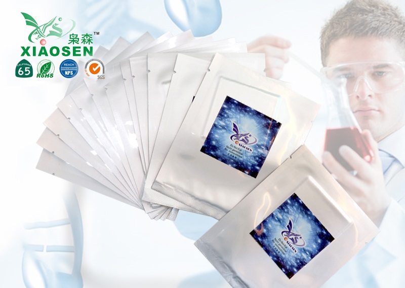 梟森第三代環(huán)保高效防霉片是梟森公司嚴(yán)格按照歐盟標(biāo)準(zhǔn)開(kāi)發(fā)出的又一款新型防霉產(chǎn)品。其原理是將防霉精華液蘊(yùn)含在防霉片的夾層之中,通過(guò)控制夾層縫隙的大小、片材面積的大小來(lái)控制氣體的釋放速度和濃度。而且,它還能隨濕度高低來(lái)控制氣體的緩釋濃度(干燥狀態(tài)下不釋放防霉氣體),可以在產(chǎn)品包裝箱內(nèi)的濕度大于45的情況下與水蒸氣接觸引發(fā)A與B物自動(dòng)發(fā)生化學(xué)反應(yīng),生成一種保護(hù)性氣體,無(wú)孔不入地與霉菌孢子充分接觸,迅速穿透微生物的細(xì)胞膜,破壞其DNA,使細(xì)菌或霉菌無(wú)法繁職,以達(dá)到商品防霉防腐的效果。所以本品既廣泛適用于皮革、人造革、紡織品、紙張、竹木材料、陶瓷、電器、文物等多個(gè)領(lǐng)域生產(chǎn)、貯存、運(yùn)輸中的抗菌防霉處理,又是家庭(換季)鞋類(lèi)、衣物、書(shū)籍、文物、家用電器、皮革制品等抗菌防霉的最佳選擇。